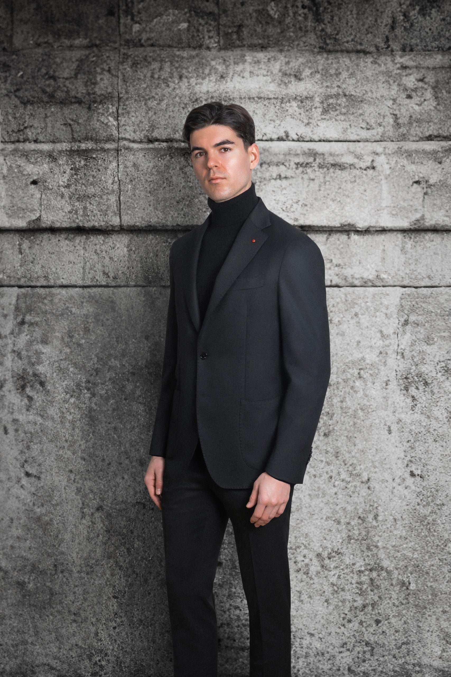 Un costum model all-day casual, din lana tip flanel fin 100%, necaptusit, cu sacou la doi nasturi, cu doua slituri la spate si buzunare aplicate si pantalon care se inchide cu siret. Un costm extrem de versatil si confortabil care poate fi purtat la aproape orice ocazie, inclusiv asortat cu o pereche de sneakers.