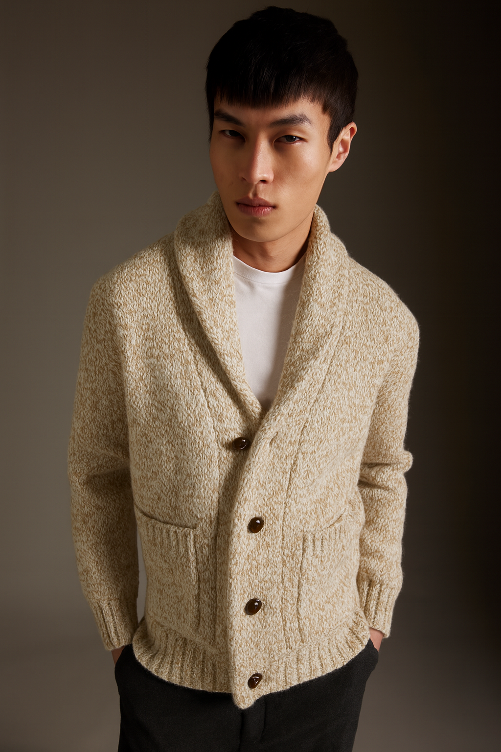Rasfata-te in confortul acestei jackete cu nasturi, de culoare crem pepit cu alb (tip houndstooth), confecționata din 80% lana si 20% nylon. Textura sa moale îți va oferi o senzație absolut speciala, iar culoarea o va face ușor de asortat cu orice ținută casual. Croiala modernă și culoarea deosebita fac din aceasta jacketa o adevarata pata de culoare  în garderoba oricărui bărbat.