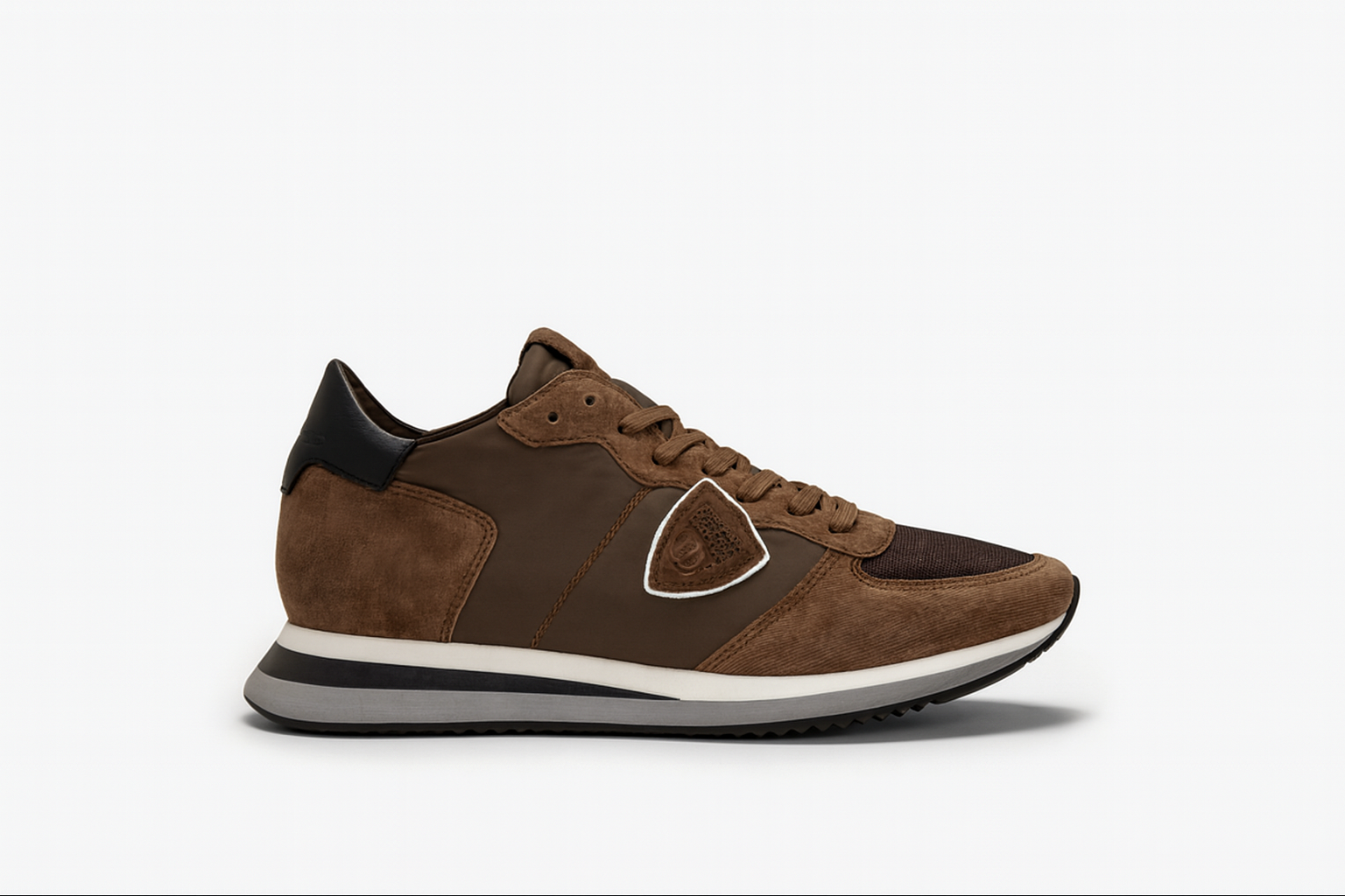 Philippe Model - Sneaker maro vintage - combinatie de piele naturala si material